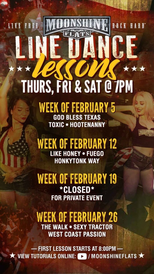 Kick off your weekend early with Line Dancing Lessons and drink specials all night long!